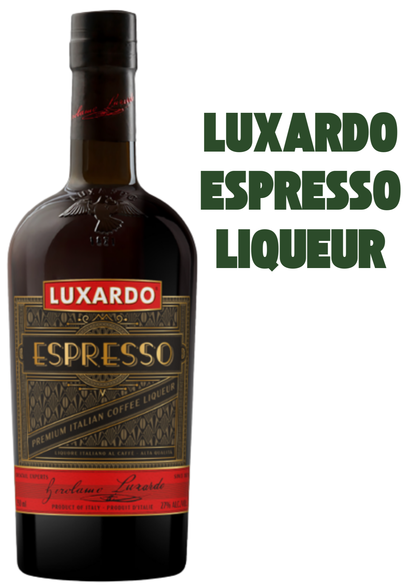 Luxardo Espresso is the unique Luxardo interpretation of a coffee liqueur. Luxardo espresso liqueur is ultra-premium coffee liqueur made from a blend of beans sourced from Brazil, Columbia, and Kenya and crafted for the perfect round and smooth taste. Luxardo custom grinds and roasts the beans and then does a 30-day heated infusion to pull out all of the amazing flavor and essential oils making an incredibly rich espresso liqueur.